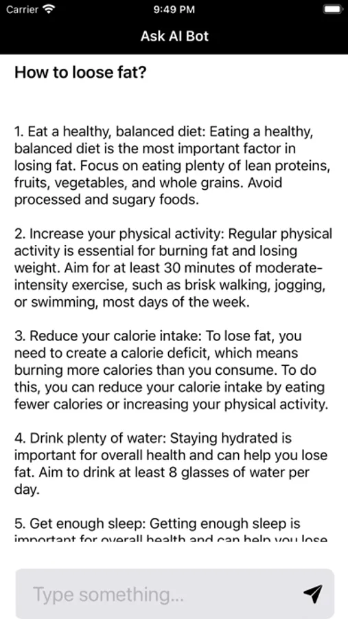 Ask AI Bot is a user friendly mobile app which uses OpenAI API. Like you can ask recipes, programs, educational question and about sports etc..