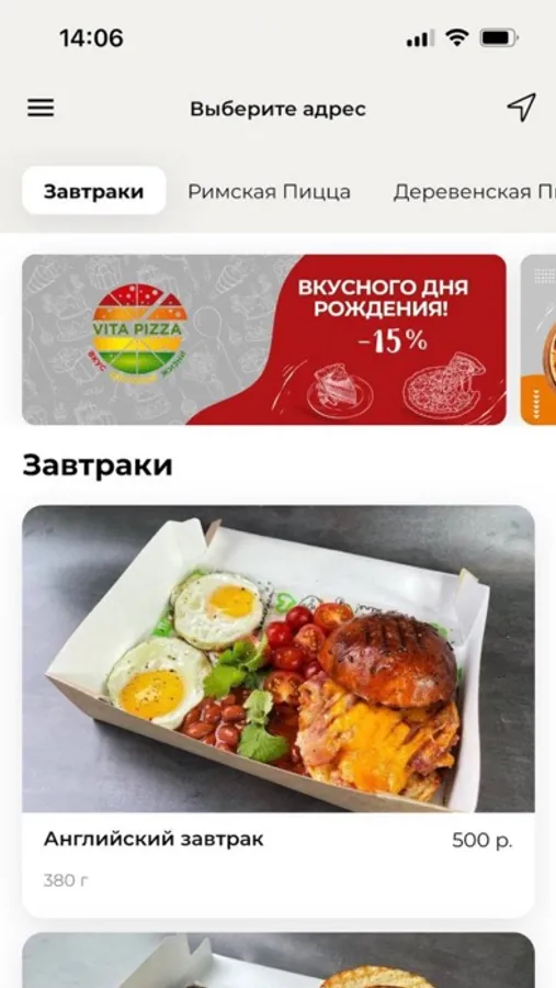 - Выберите категорию блюд и добавьте блюдо в корзину