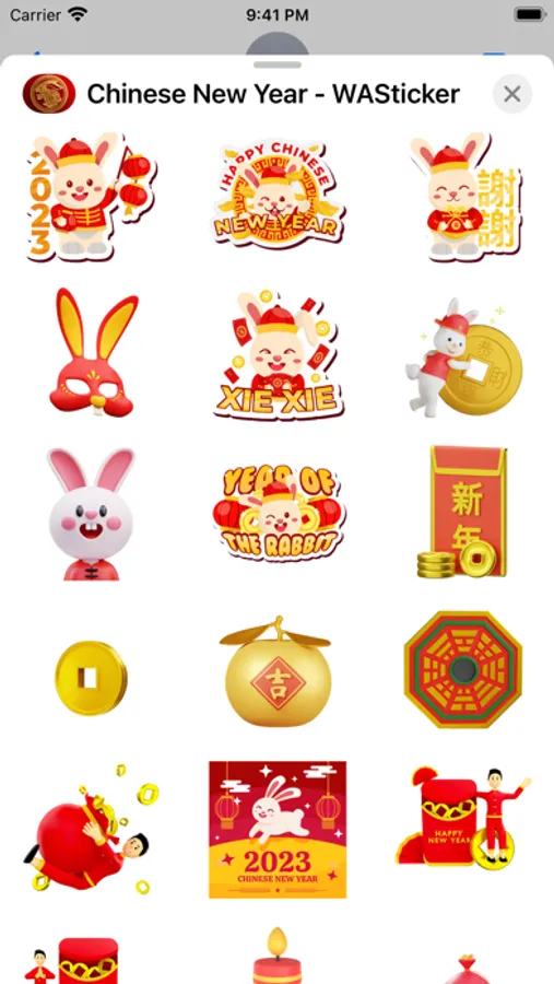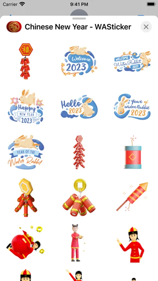 On the occasion of the approach of the Chinese New Year - WASticker, and with the advent of 2023, we present to you the most beautiful new application dedicated to this great occasion that offers you various beautiful stickers for chat messages and respond to congratulations and blessings on the occasion of the New Year, you will find phrases such as Happy New Year and Happy day as well as New Year Full of joys and packages of blessings for all family and loved ones, the application is new, practical and easy to use, with just one click, then enjoy sending messages