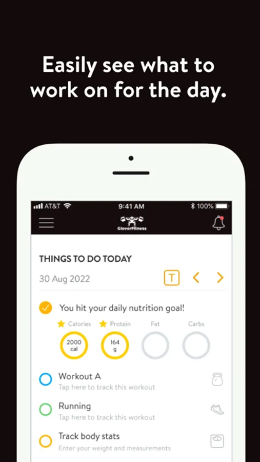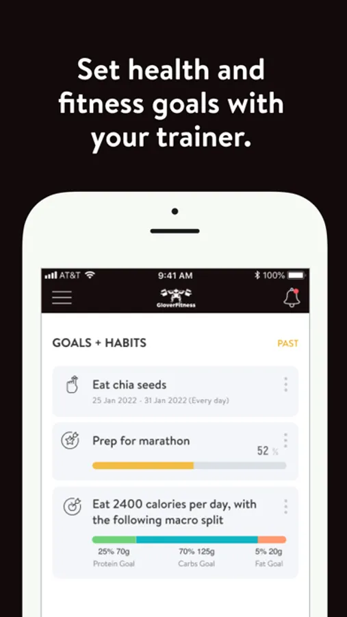 With the GloverFitness App, you will have access to workout programs designed specifically to help you reach your fitness and health goals! You can follow & track your workouts, your nutrition, your lifestyle habits, measurements and results–all with the help of your coach.
