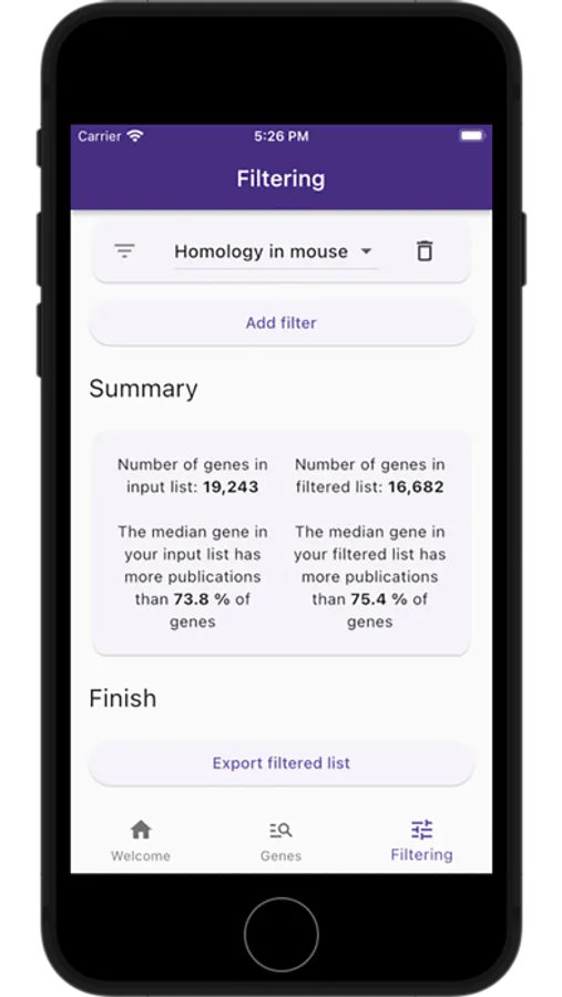 Users submit a list of human genes (presumably from a high-throughput -omics experiment) and can filter these genes down based on a large list of factors, including: