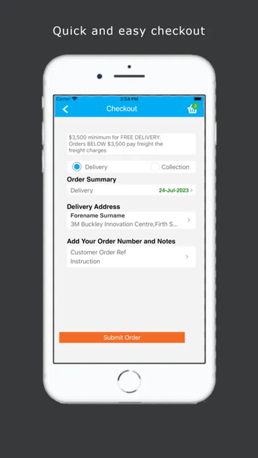 Place your order, then click and submit (partial orders can also be saved in the cloud to finish at a later date, on any compatible device)