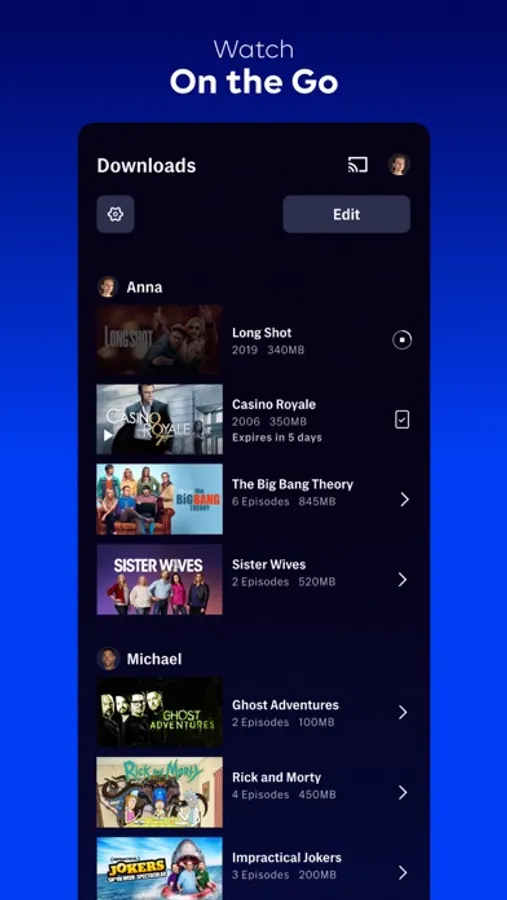 • Download shows and movies you love to watch on-the-go with select plans. (Download limits vary by subscription plan.)