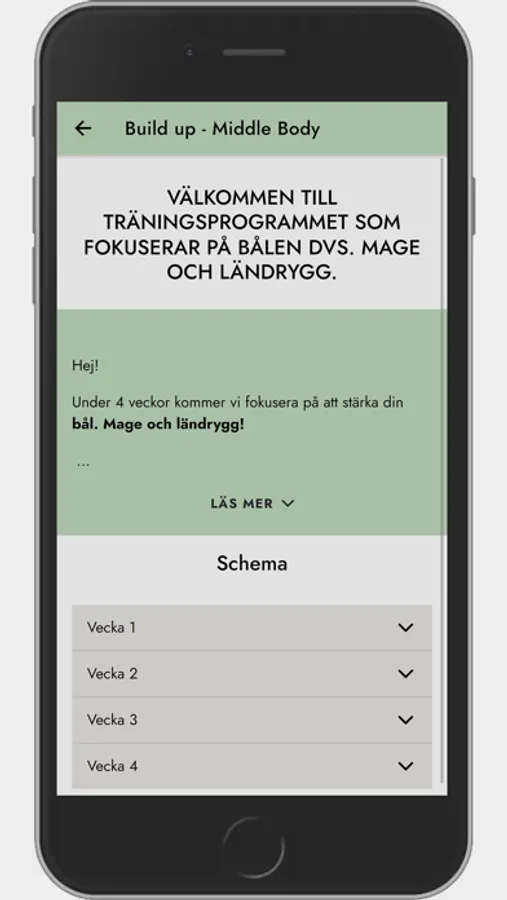 I appen hittar du träningsprogram för hela kroppen. I appen finns träningsprogram som passar de som vill ha maximal effekt av ens träning, utan att behöva åka till gymmet. Alla pass kan enkelt utföras hemifrån med minimalt antal redskap, endast gummiband!