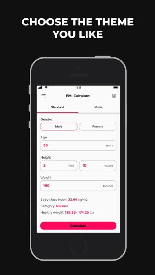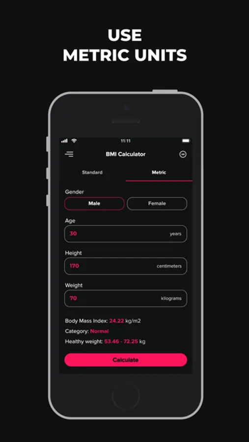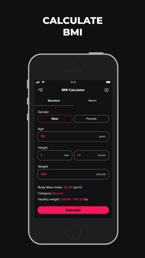 Embarking on your BMI tracking is as simple as inputting your gender, age, weight and height using standard or metric measures. Click the calculate button and find out if you're a healthy weight.