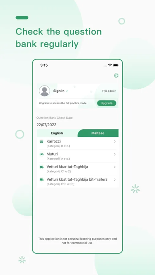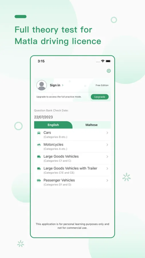 • Full theory test for Malta driving license