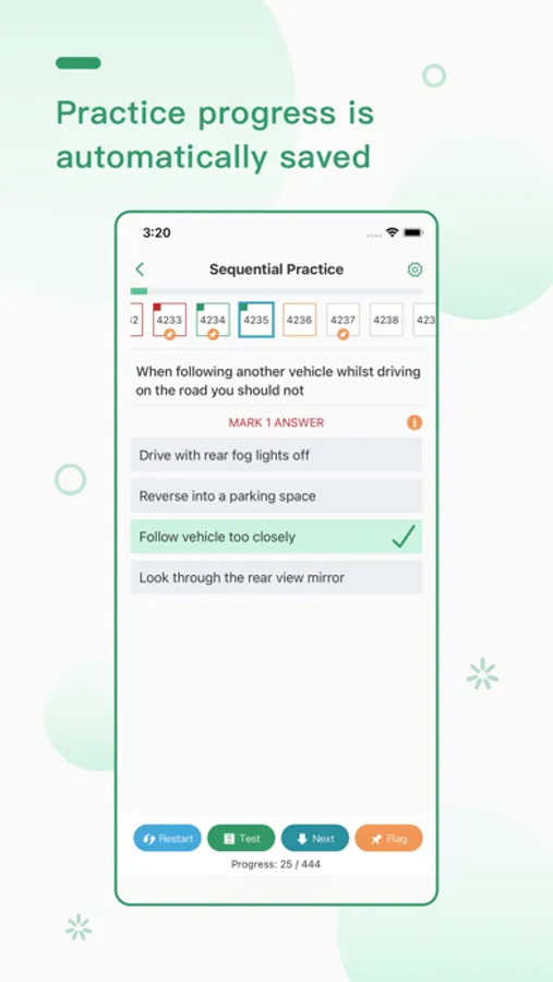 • Practice progress is automatically saved