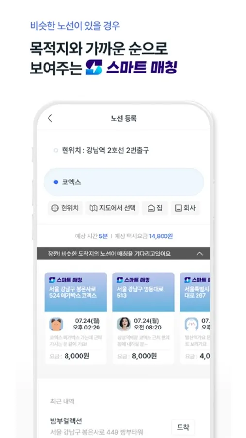 모아봤어요. 매칭으로 상대와 출발지 장소가 정해졌다면,