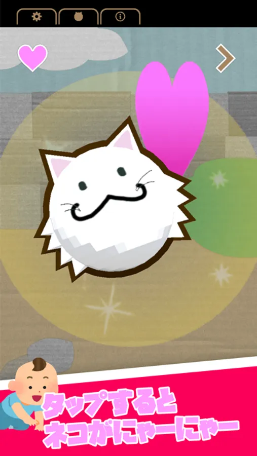 タップすると猫のキャラクターがニャーニャー鳴くだけの、シンプルなアプリです。