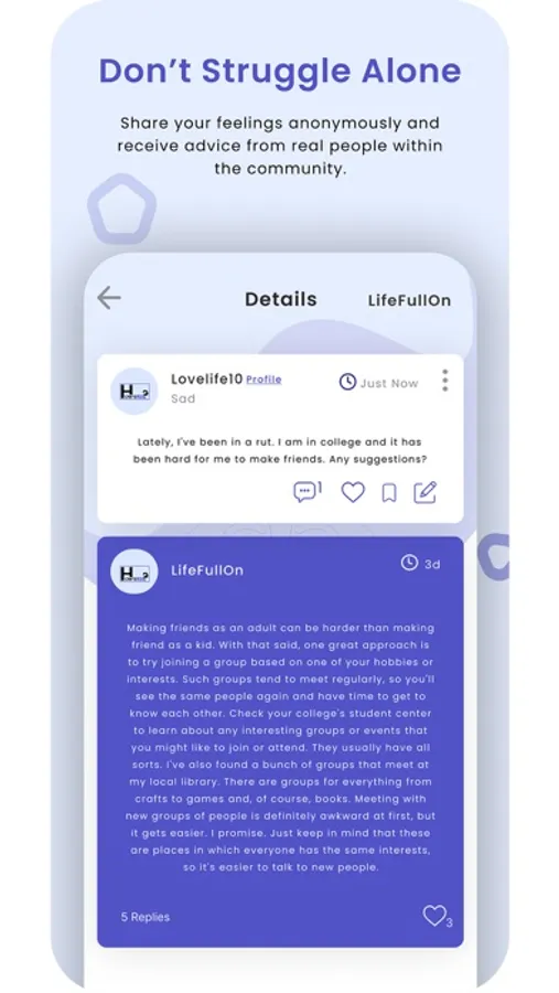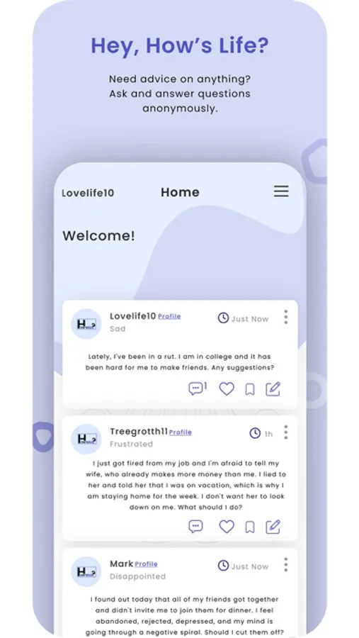 It can be scary or embarrassing to share our innermost thoughts with those around us, so posting anonymously on a platform like ours is invaluable. Struggling alone is incredibly challenging, but by opening up and sharing your challenges with a compassionate community, you can find the support needed to make life bearable again. Joining hands in solidarity creates a safe space of positivity where everyone has someone who understands them.