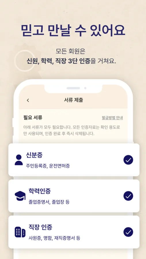 남녀 모두 3단 인증(신분증,학력,직장)을 인증해요.