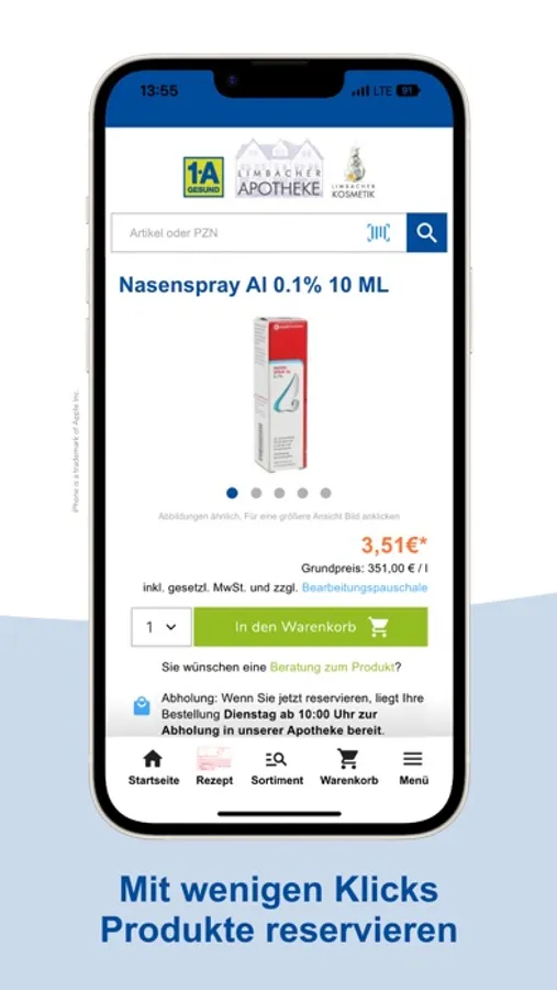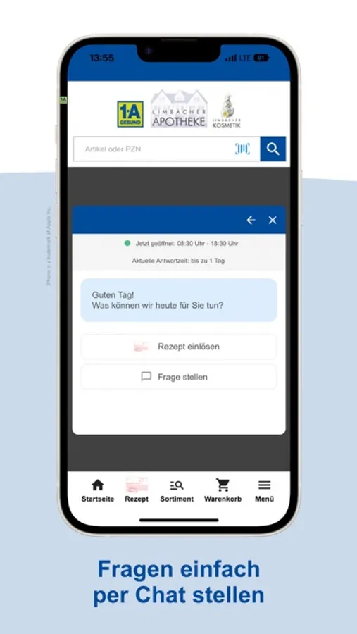 Wir bieten Ihnen über die App unser gesamtes Sortiment. Nicht sofort verfügbare Produkte bestellen wir für Sie und machen Sie in der Regel bis zum nächsten Werktag abholbereit. Gerne liefern wir Ihnen Ihre Bestellung per Botendienst direkt nach Hause.