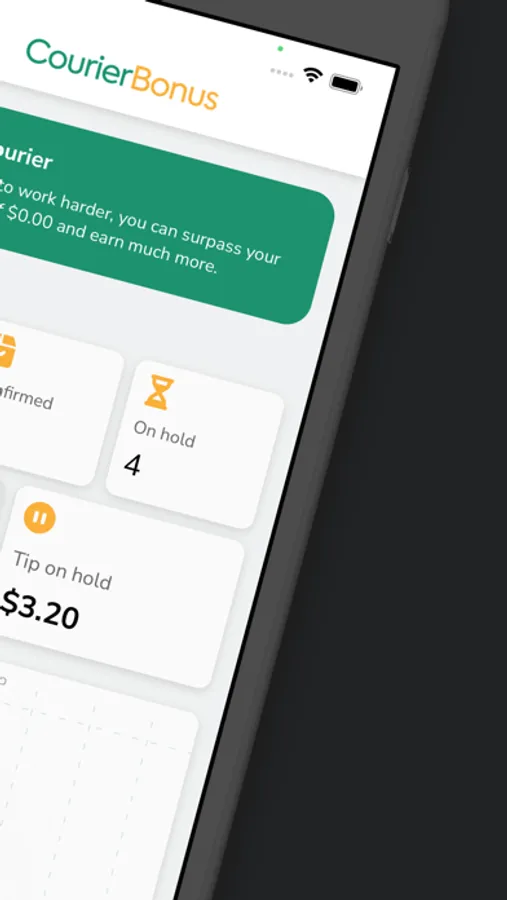 CourierBonus is an innovative mobile app designed to motivate couriers to deliver packages on time by rewarding them with their earned tips. The app provides an intuitive interface that allows couriers to view their current deliveries and their corresponding tip amounts.