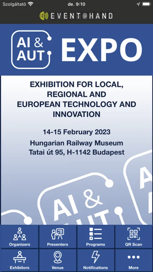 AI & Aut Expo Hungary - we provide an exhibition space for local, regional and European industry, technology, research and innovation in AI and Autonomous Systems. A two-day event with plenary presentations by senior policy makers, industry and research leaders from Hungary and Europe. Expo topics: AI foundations, Autonomous systems, Industry 4.0, Mobility and Aviation, Smart Agriculture, Data, Gaia-X, Natural Language Processing.