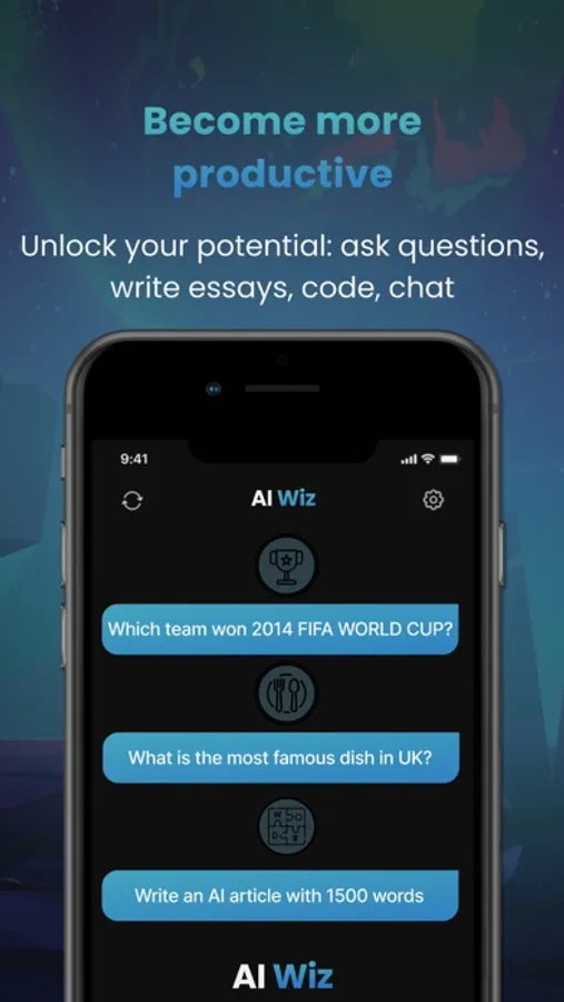 Introducing AI Wiz©, your trusted virtual assistant! This cutting-edge app is designed to enhance your work and conversations by utilizing the latest advancements in natural language processing and artificial intelligence technology. With AI Wiz, you can effortlessly create stories, images, essays, poems, texts, code, and much more.