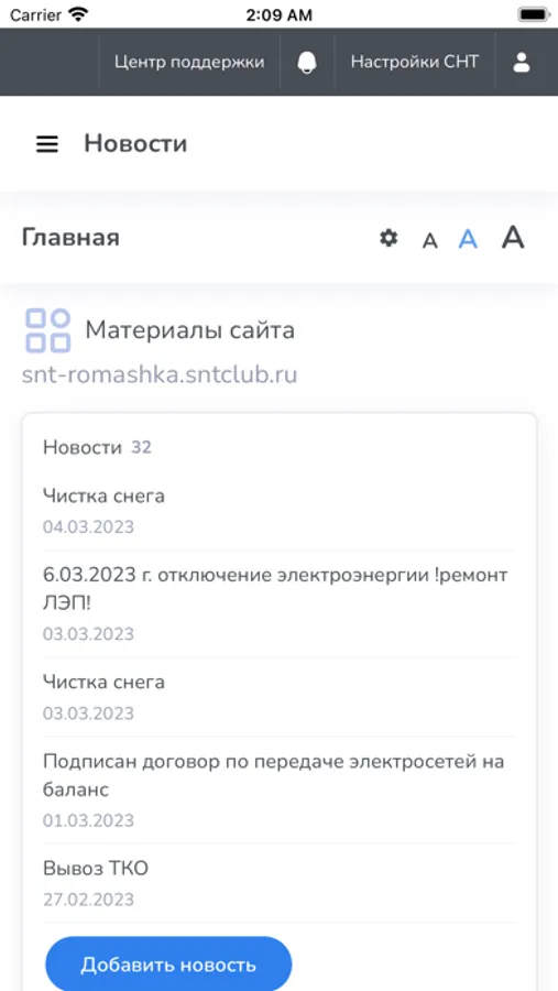 Сайт СНТ – публичная страница вашего СНТ. Размещайте полезную информацию и делитесь ею с садоводами. Можно подключить свой домен.
