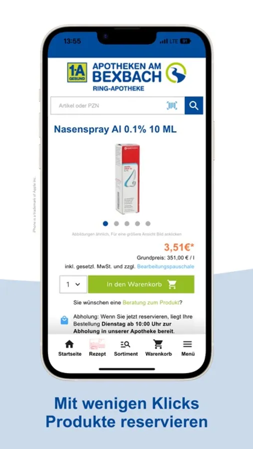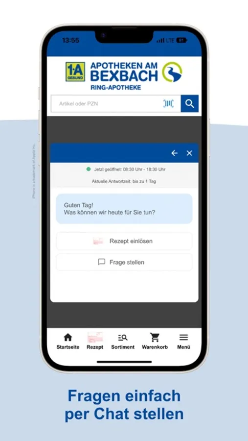 Wir bieten Ihnen über die App unser gesamtes Sortiment. Nicht sofort verfügbare Produkte bestellen wir für Sie und machen Sie in der Regel bis zum nächsten Werktag abholbereit. Gerne liefern wir Ihnen Ihre Bestellung per Botendienst direkt nach Hause.