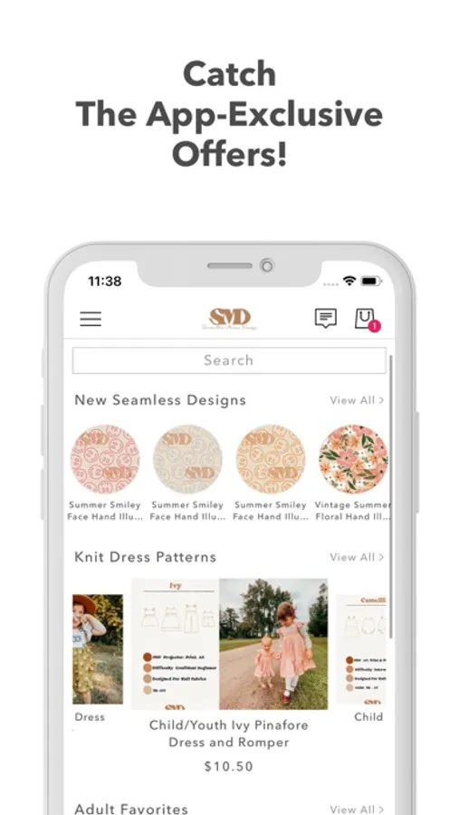 This apps includes simplified shopping for Samantha Marie Design: Seamless Designs, Sewing Patterns and More.