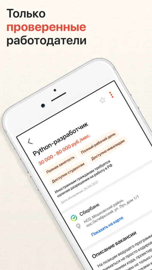 • Удобные настройки поиска. Местоположение, желаемая зарплата, график работы, устройство для людей с ограниченными возможностями – выбирайте, что подойдет именно вам.