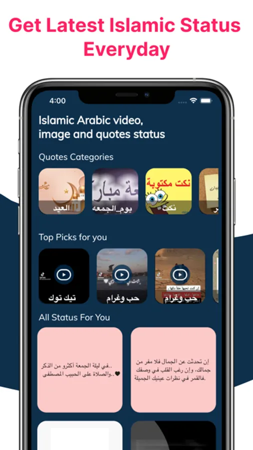 Islamic Naat Status, Owais Raza Qadri Status, Tahir Qadri Naat Video Status, Muhammad Raza Saqib Mustafai Videos, Tariq Jameel emotional bayan, Khwaja Garib Nawaz Qawwali Status, Ramadan Status Video, Ramzan Mubarak & Eid Wishes, Dua video status, Jumma Mubarak video status, Muslim Couple Status
