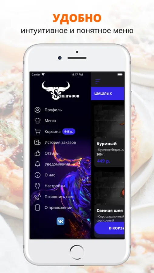 Приложение Sherwood | Подольск — это удобный способ заказа еды домой или в офис. Всегда в нашем меню - бургеры, пицца, салаты.