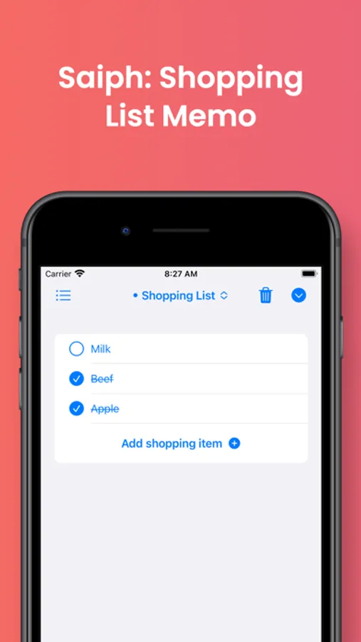Saiph is a simple and easy to use shopping memo app that helps you stay organized while you shop.