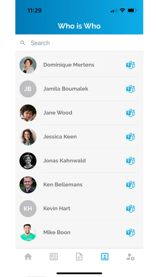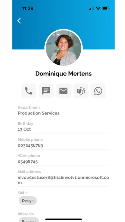 Connect to an employee through Teams, WhatsApp, SMS or call in just one touch.