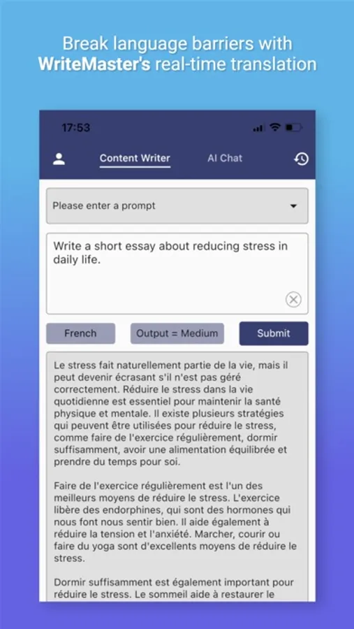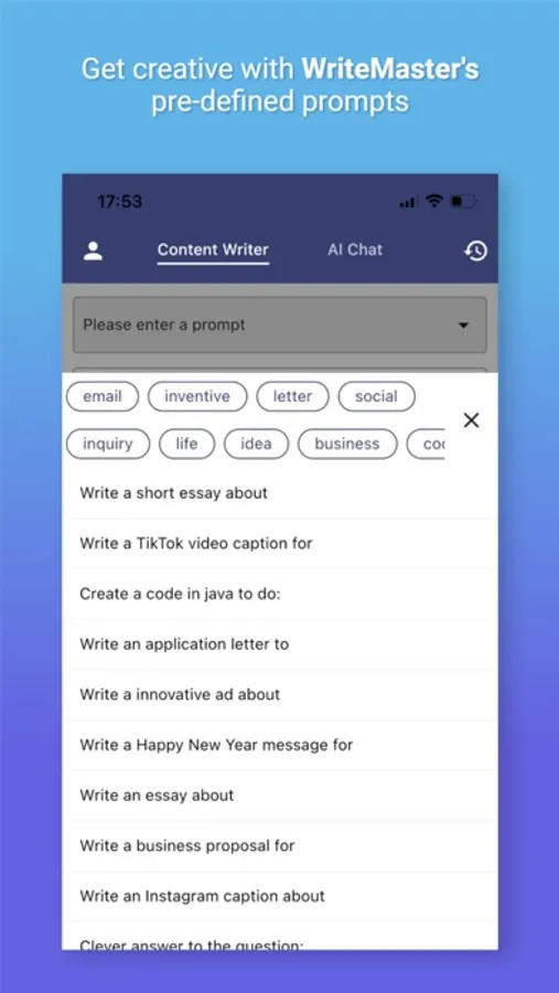 WriteMaster's automated writing capabilities and AI chat feature make it an ideal tool for anyone looking to streamline their content creation process. The app's AI writer and AI content writer features utilize sophisticated algorithms to generate high-quality, error-free content in a matter of seconds. And with its AI chat feature, The app offers open-ended and engaging conversations that are perfect for brainstorming content ideas. The app's automated writing feature streamlines the content creation process, saving you time and energy