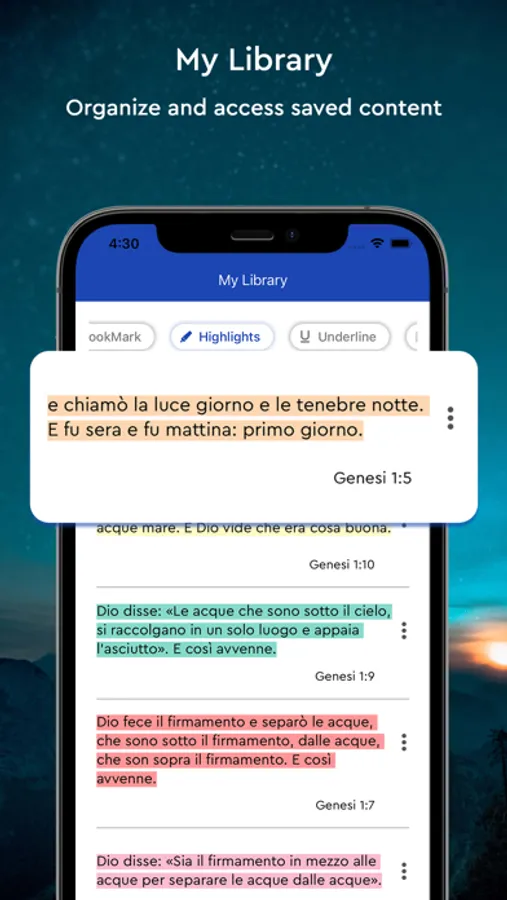 With our app, you can read the Italian text of the Bible, as well as view the English translations, so you understand the meaning and context of each passage. The app also includes audio recordings of the Italian text, allowing you to hear the correct pronunciation and improve your Italian language skills.