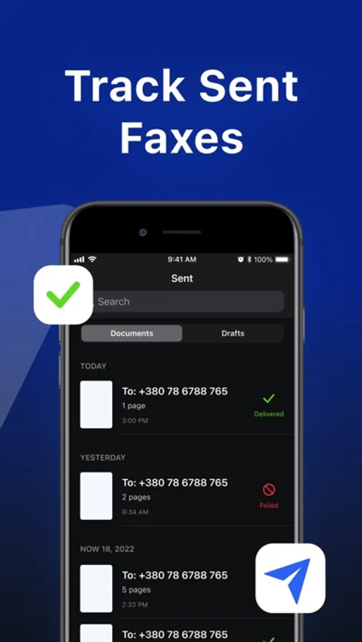 Fax App notifies you when your documents are sent and gives you an update when they are successfully delivered. This means no more worrying about lost documents.