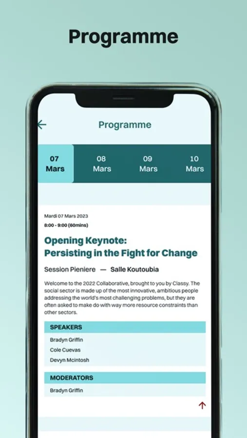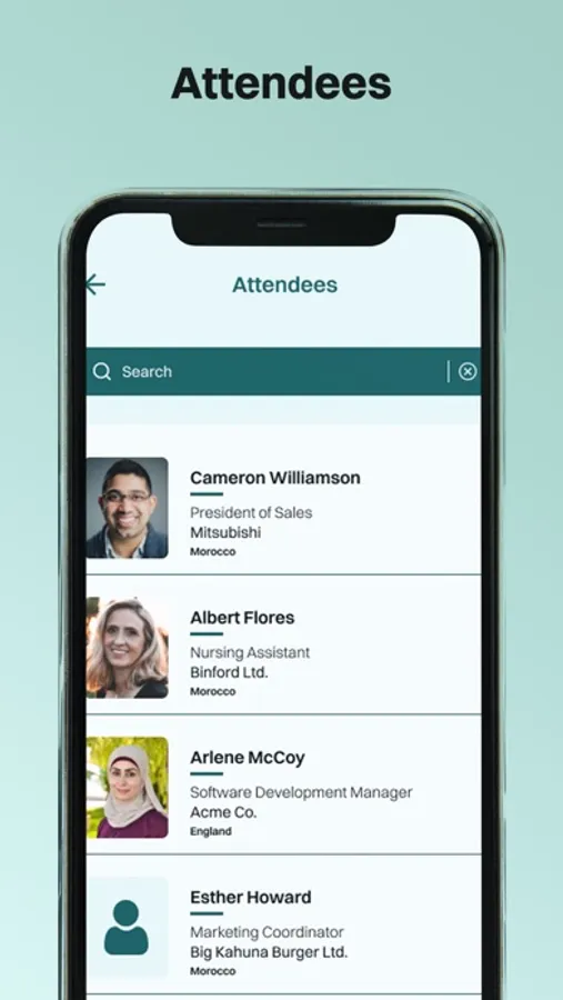 You can search and message other attendees, ask speakers for sessions, and participate in live voting.