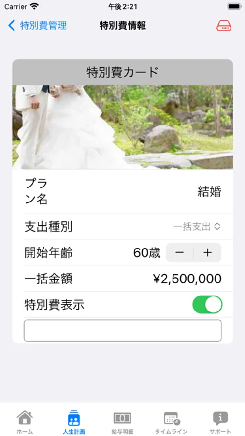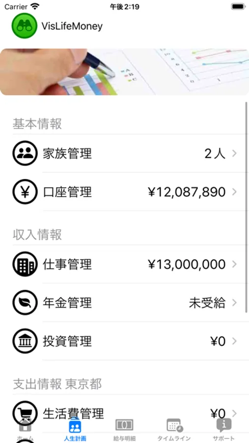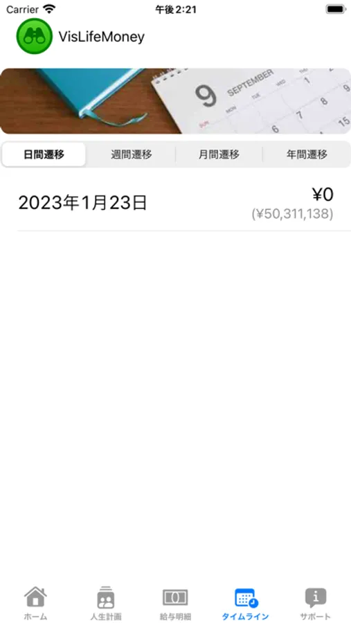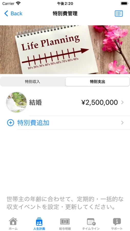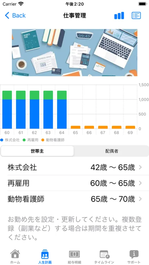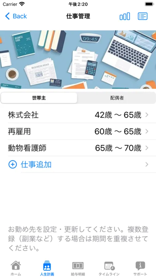 このアプリはライフプランを「人生設計」とし、収入の空白期間が発生しないよう設計を行います。