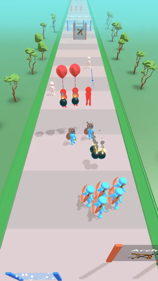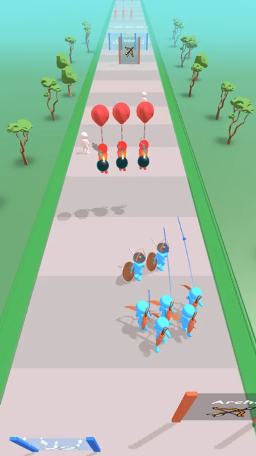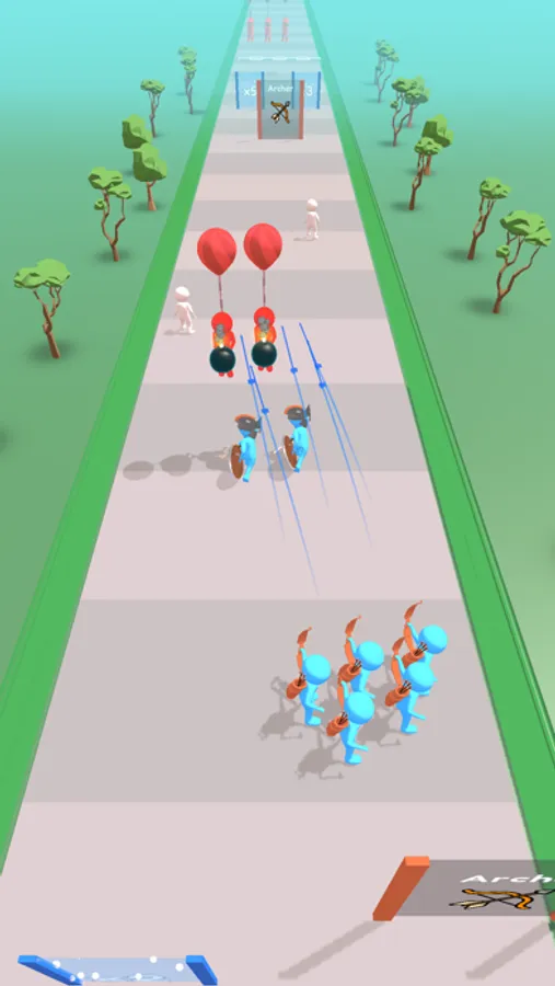 As you pass through gates, you'll have the power to transform your soldiers into skilled swordsmen, archers, or bombers, each with their own unique abilities. The swordsmen are fierce in close combat, the archers are deadly from afar, and the bombers pack a powerful punch. But don't just rush through the gates without thinking, because each decision you make could mean the difference between victory and defeat.