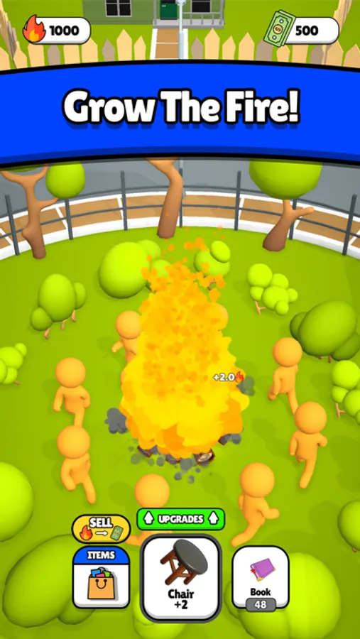 Grow your fire, equip different items, upgrade your stats and burn them all!
