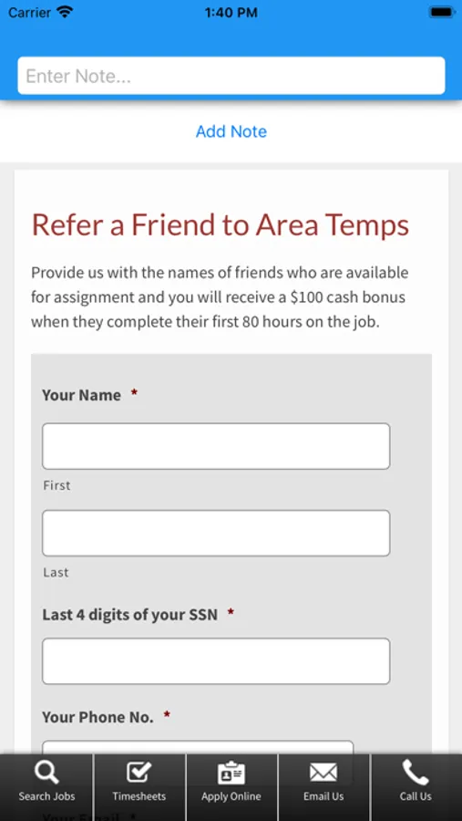 Our Mobile App includes all the functions found on our website www.areatemps.com plus more.