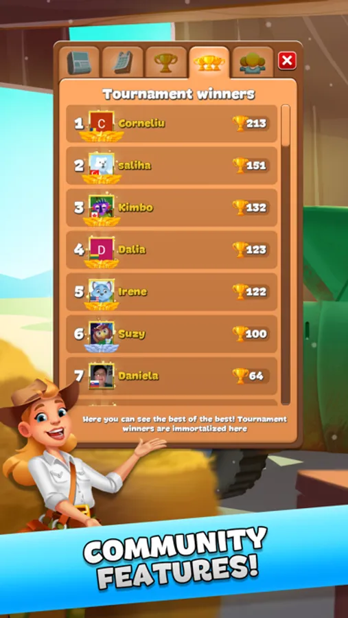 If you match multiple creatures of the same type, you can create special boosters: bees buzz vertically or horizontally though your rows, while the adorable skunks repel everyone within a radius as soon as they use their stinky spray. Try to combine those specials for huge booms and blast your way through 100 challenging levels! Win stars to open treasure chests which give you helpful rewards and make sure to check back every day for your daily gift.