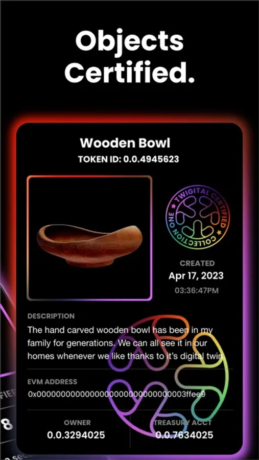 Twigital™ (twin-digital) is a novel application that creates tokenized digital twins. These assets come in the form of 3D objects and will become the building blocks utilized to populate spatial computing environments. Twigital is thrilled to offer the first solution that facilitates the creation of such file types. We view Twigital as a core utility, an integral piece of Web3 enabled infrastructure that will help fuel the tokenized economy. The world will be tokenized, it's time to start tokenizing the world.