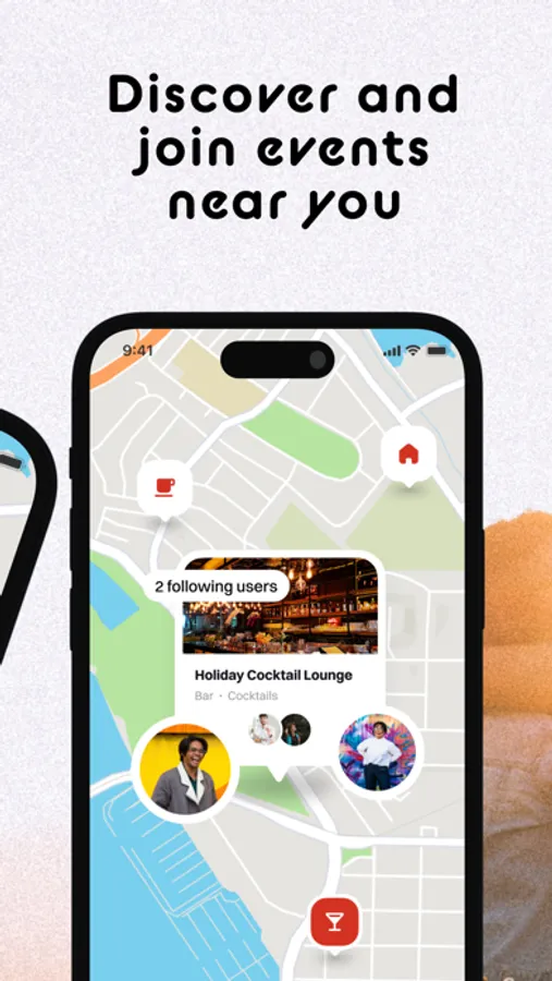The app features an interactive map that shows you everything that's happening nearby, making it easy to plan your day or night out.