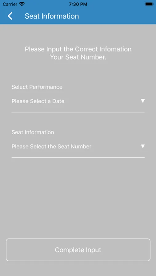 1. 공연관람 전, 본인의 티켓 좌석 정보를 확인하여 앱에 좌석번호를 입력해주십시오.
