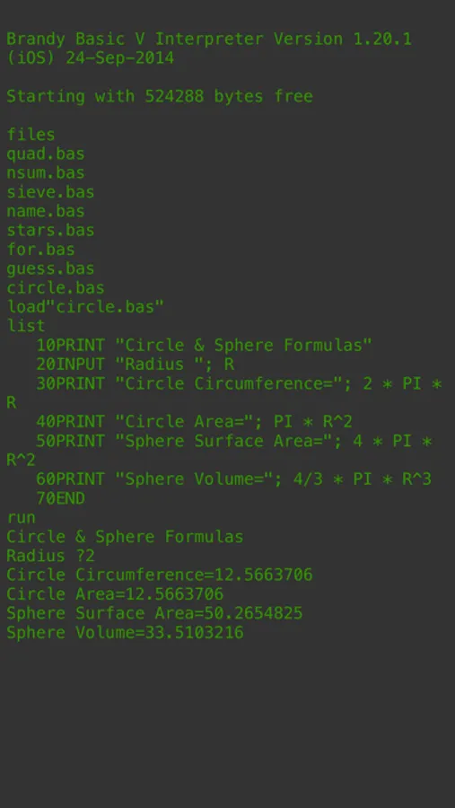 Program BASIC Language on your iPhone/iPad/iPod Touch. This version of BASIC is compatible with BBC/Acorn BASIC.