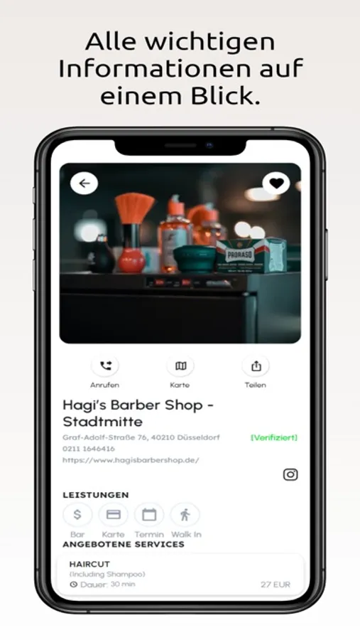 - Alle wichtigen Informationen wie Adresse, Öffnungszeiten und Preisliste an einem Ort