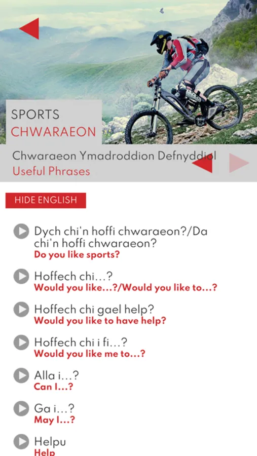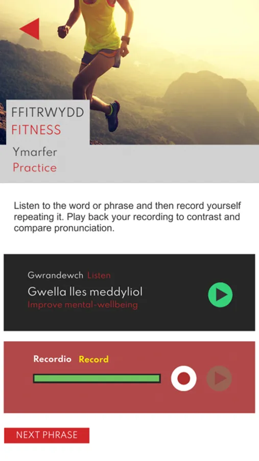 The aim of this app is to support learners, apprentices and employees who need support to be able to use the Welsh language confidently in professional situations related to Sport. The app has been funded by the Coleg Cymraeg Cenedlaethol with the Welsh Government support. It was developed by Coleg Cambria in partnership with Galactig, a bilingual digital creative agency. Voiced by Nicky John.