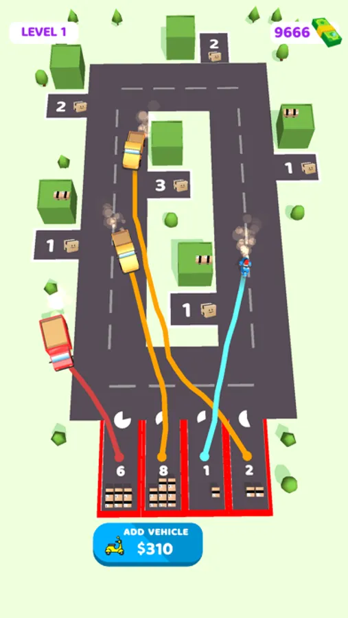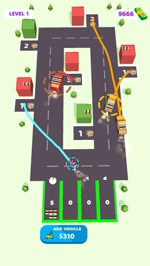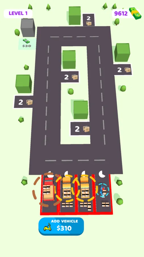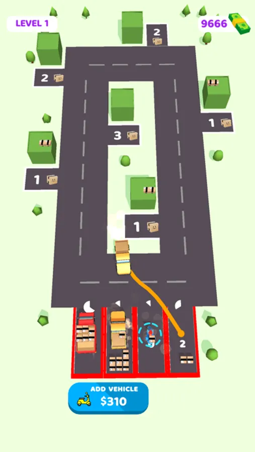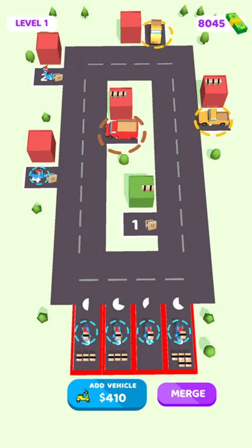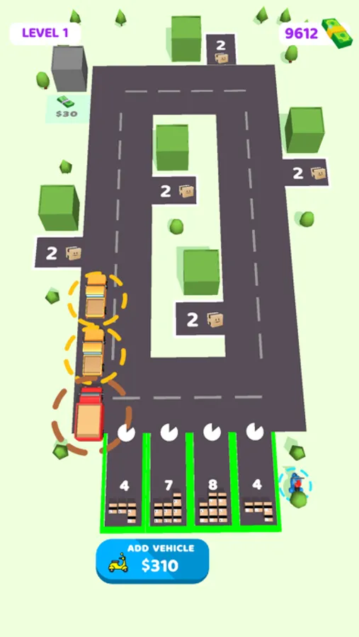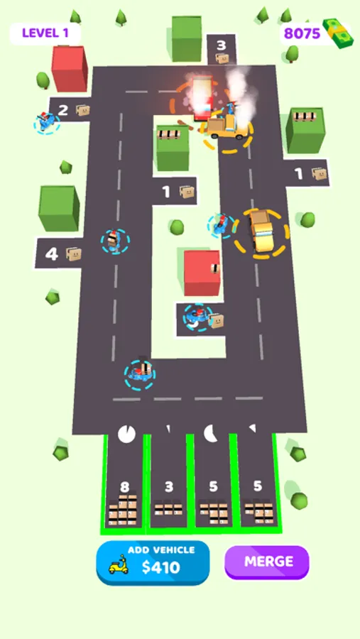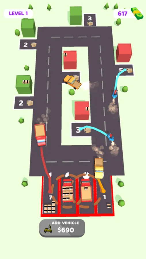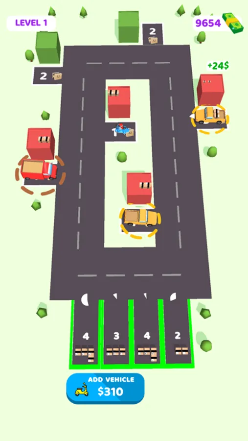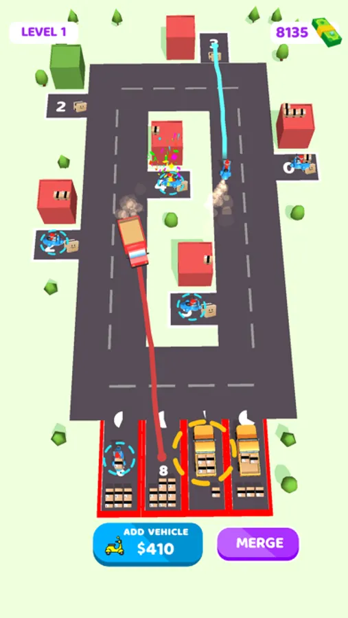 Manage your cargo vehicles to deliver all your cargoes! Timely delivery is very important! If you can not manage your time, you will lose all your cargoes! Buy new houses to make more money! Merge your vehicles to deliver more cargoes!