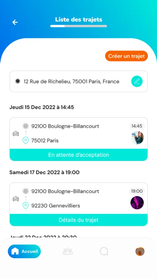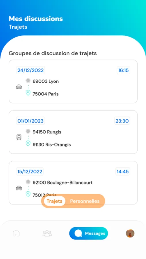 Comment ? Tu peux rejoindre ou créer un groupe au sein de notre communauté de confiance. Pour cela, tu peux sélectionner ta zone de départ et d'arrivée ainsi que tes modes de transports privilégiées.
