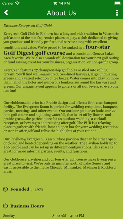 Evergreen Golf Club [Elkhorn WI] is designed to make it easy for users to book tee times, find out about events and communicate easier. Exclusive offers will be made to app users.