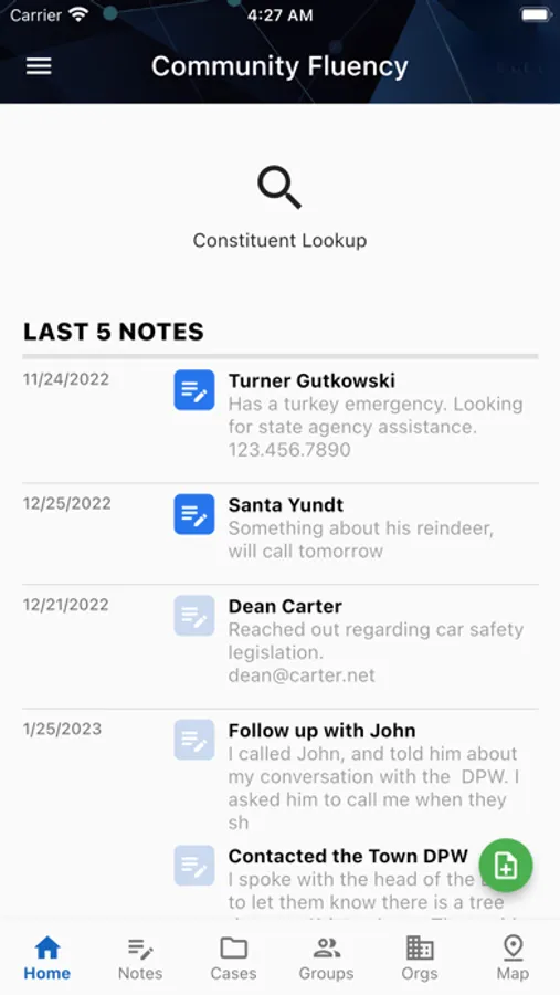 See your constituents, notes, cases, groups, organizations, and files without sitting down and logging in. Includes mapping and the ability to add notes. This app is for users and accounts currently using Community Fluency for constituent service in Massachusetts.