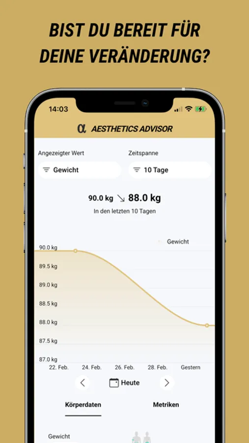 Mit meiner innovativen und ganzheitlichen Fitness-App "Aesthetics Advisor" und meinem Experten-Team, betreue ich dich online, individuell und persönlich und verhelfe dir zu einem gesünderen und glücklicheren Lebensstil.