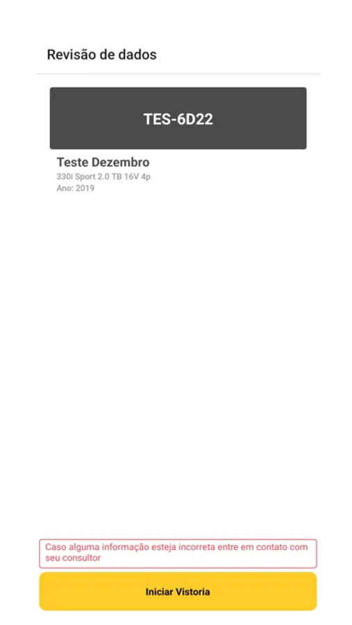 Aplicativo para realizar auto vistoria veicular