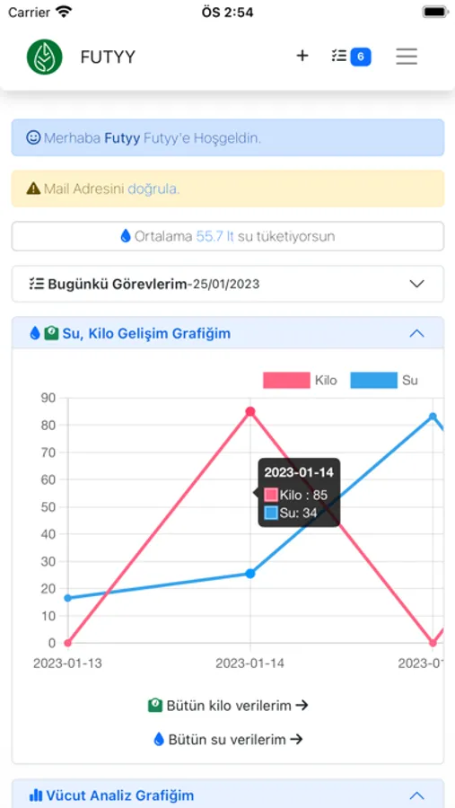 Futyy günlük kilo gelişim ve beden ölçü grafiğinizi, beslenme bilginizi, analizlerinizi takip edebileceğiniz bir uygulamadır.
