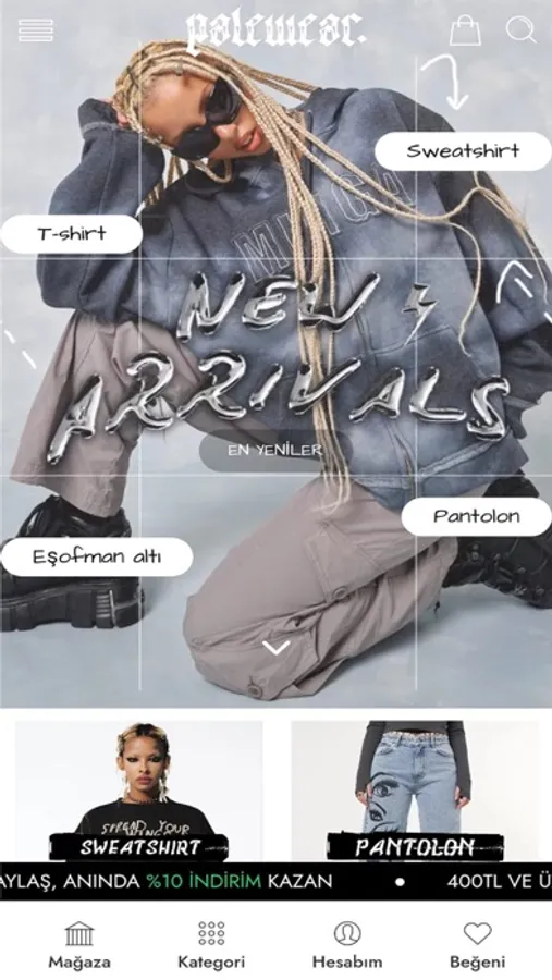 Pale Wear mobil uygulamasını şimdi indir ve online giyim ve moda ürünleri satın almanın, günlük hayatın için moda ürünleri görmenin, sezonun yeni kadın ve erkek trendlerini görmenin, hesabını yönetmenin ve en yakınındaki mağazaları bulmanın yeni bir formunu keşfet.